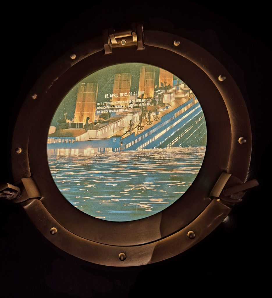 Die Ausstellung ist wirklich sehr abwechslungsreich gestaltet und man erfährt nicht nur Details, wie es zum Sinken des „unsinkbaren“ Luxusschiffes kommen konnte, sondern man lernt auch etwas zum Schiffsbau, zur Crew, zu einigen Passagieren und wie die wenigen Tage auf der Titanic verbracht wurden.