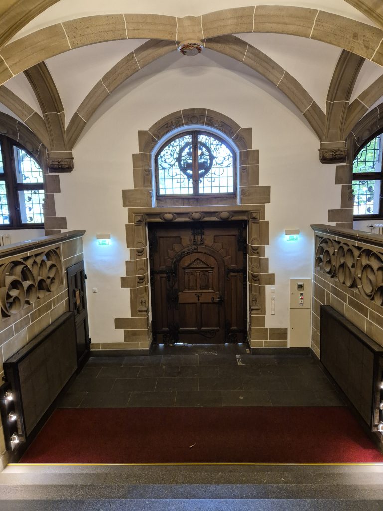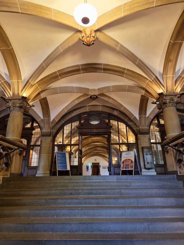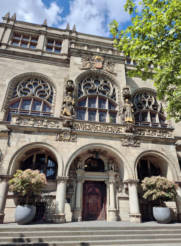 Mein Weg führte mich am Theater und am Lifesaver Brunnen vorbei, einem 1993 vom Künstlerpaar Jean Tinguely und Nikki de Saint Phalle geschaffenen Kunstwerk, das für Lebensfreude und künstlerischen Aufbruch steht. Mein Ziel war das Duisburger Rathaus. Dieses wurde zwischen 1897 und 1902 im Stil der deutschen Neorenaissance erbaut und ist bis heute Sitz der Stadtverwaltung. Die Außenfassade des Gebäudes hat mich sehr an eine Burg oder Kirche erinnert, sieht echt schick aus. 😍