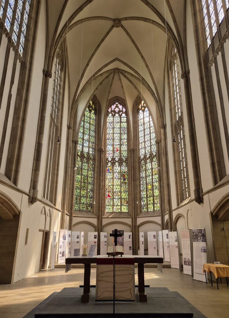 Was natürlich bei einer Alex-Städte-Tour nicht fehlen darf, ist… die Besichtigung einer Kirche. 😇 Ich bin direkt neben dem Rathaus fündig geworden, denn keine 100 m weiter steht die Salvatorkirche. Die Kirche stammt aus dem 14. Jhd. und gilt als das bedeutendste Kirchenbauwerk von Duisburg. Mich haben vor allem die bunten Glasfenster fasziniert.