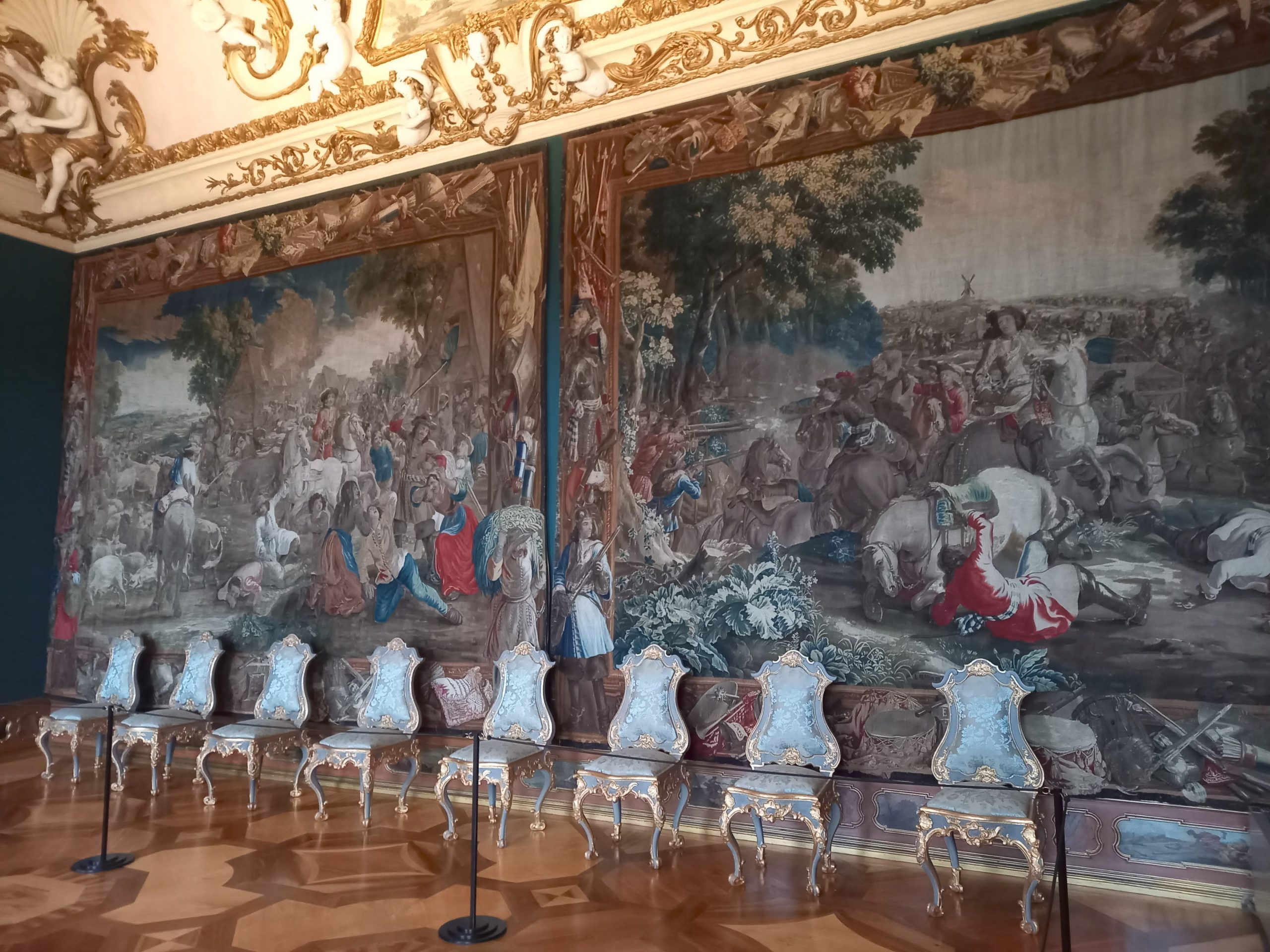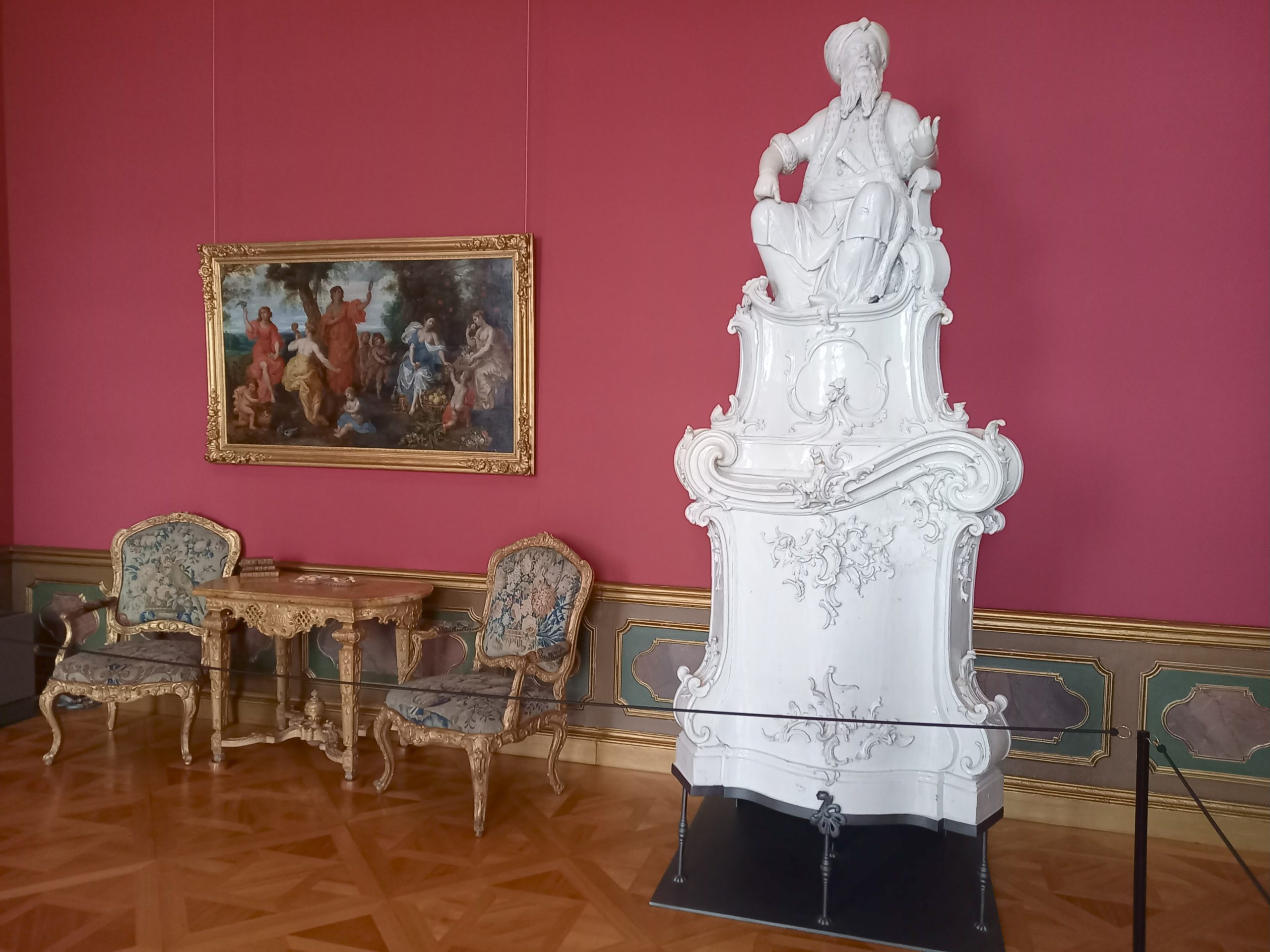 Man durchschreitet die prunkvollen Räumlichkeiten und kann die bestickten Wandbehänge und fein gearbeiteten Kaminöfen bestaunen.