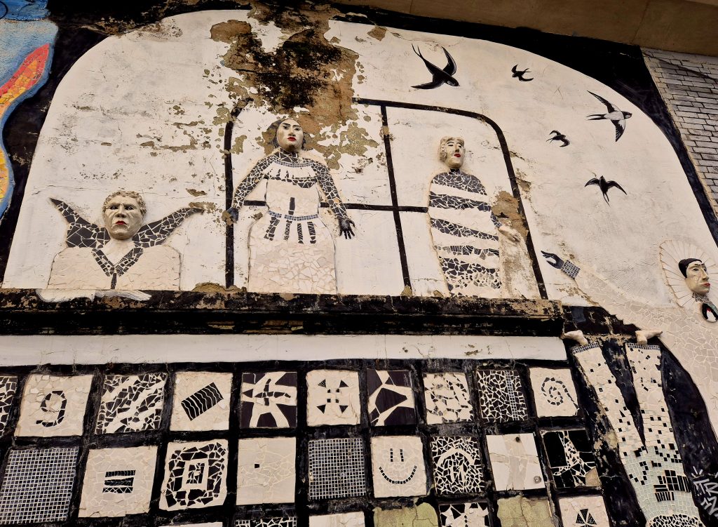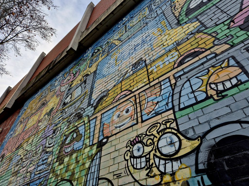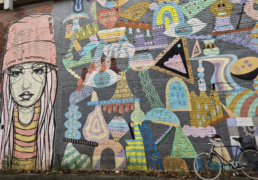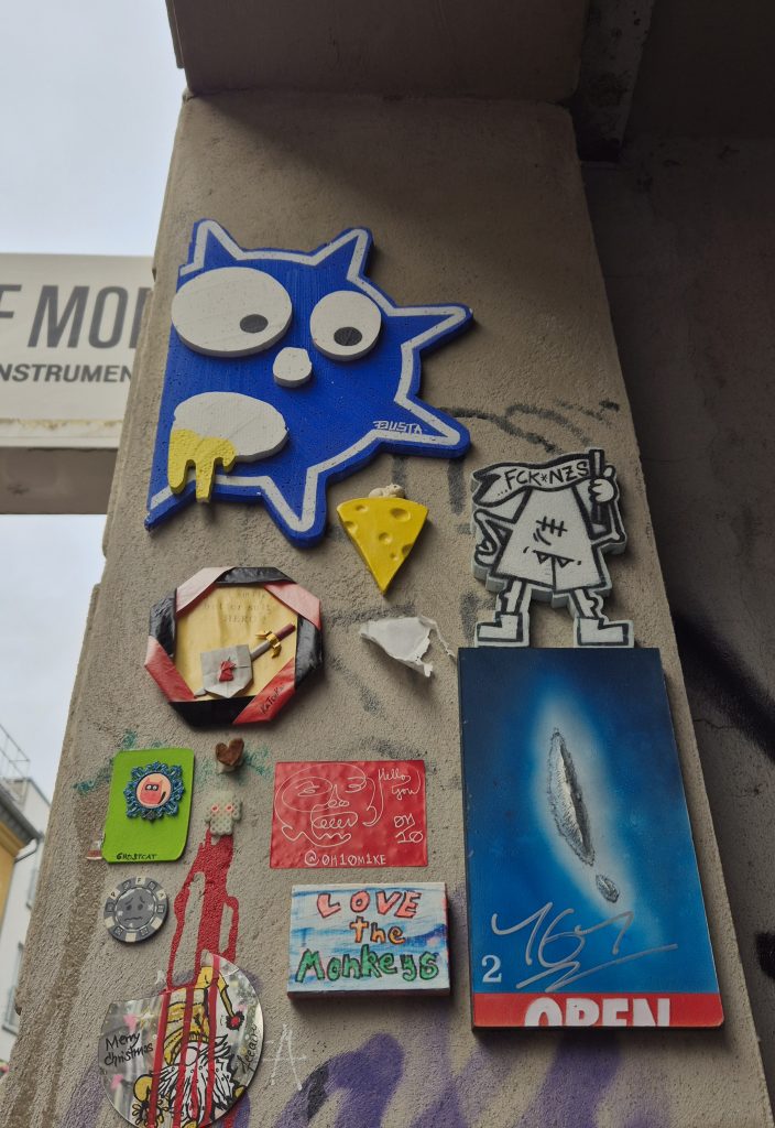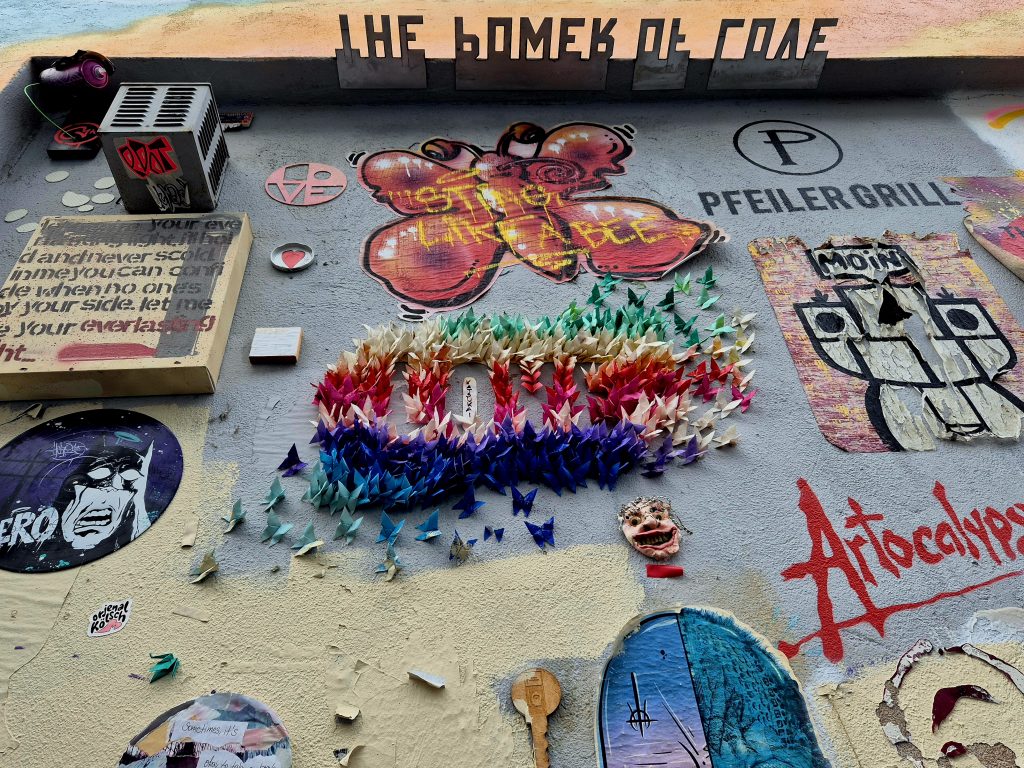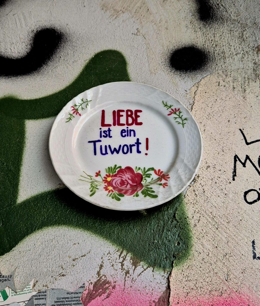 Diese Wand habe ich sogar gesehen, wenn ich in der Körnerstraße unterwegs war, aber dachte immer, „Oh man, ist diese Wand vermüllt.“ 😐 Ich bin echt ein Kunstbanause… „Ist das Kunst oder kann das weg?“ 😆